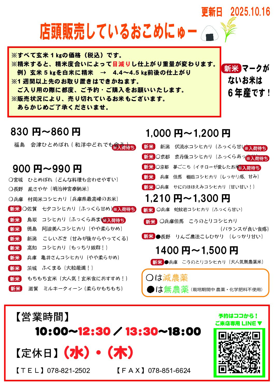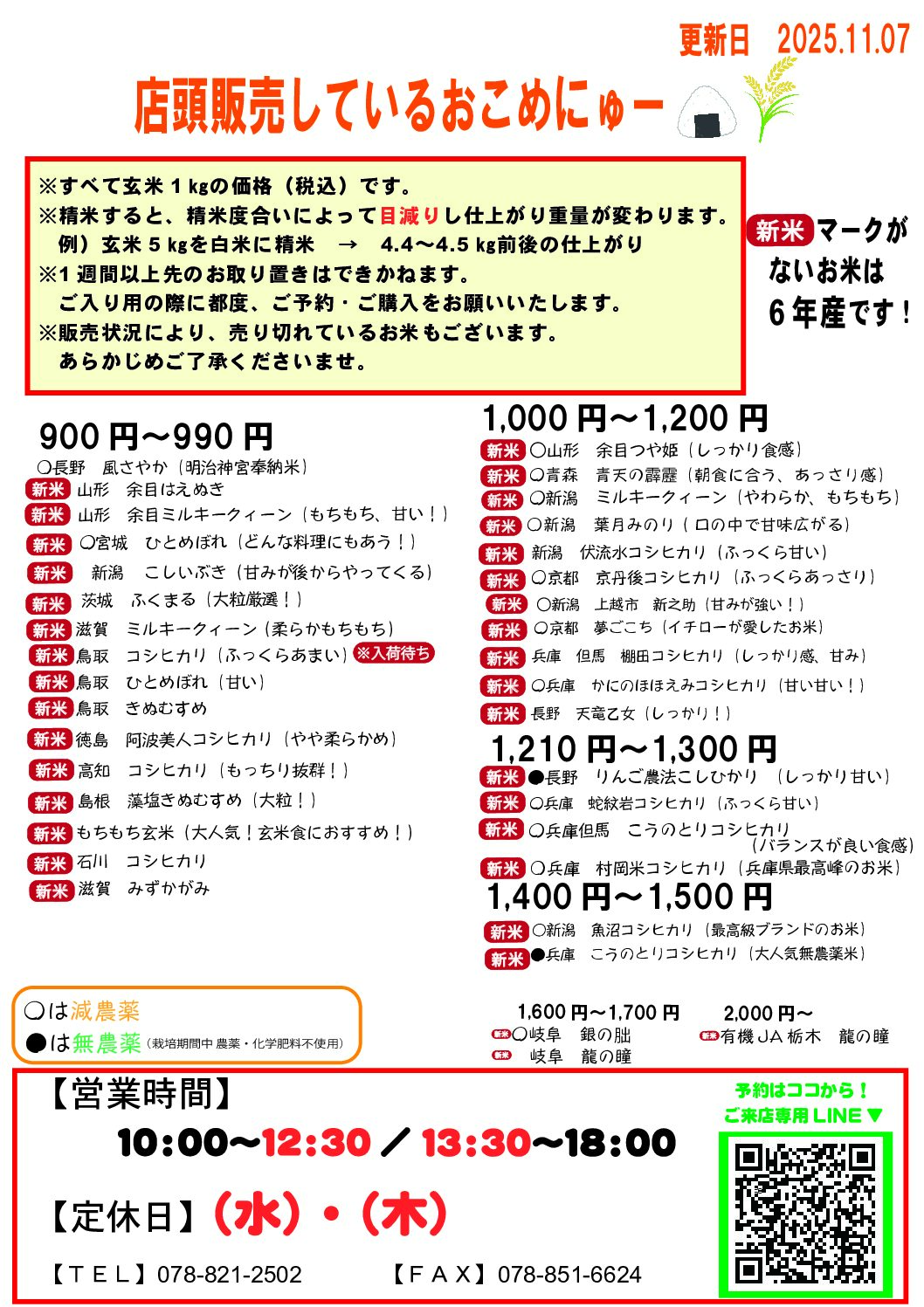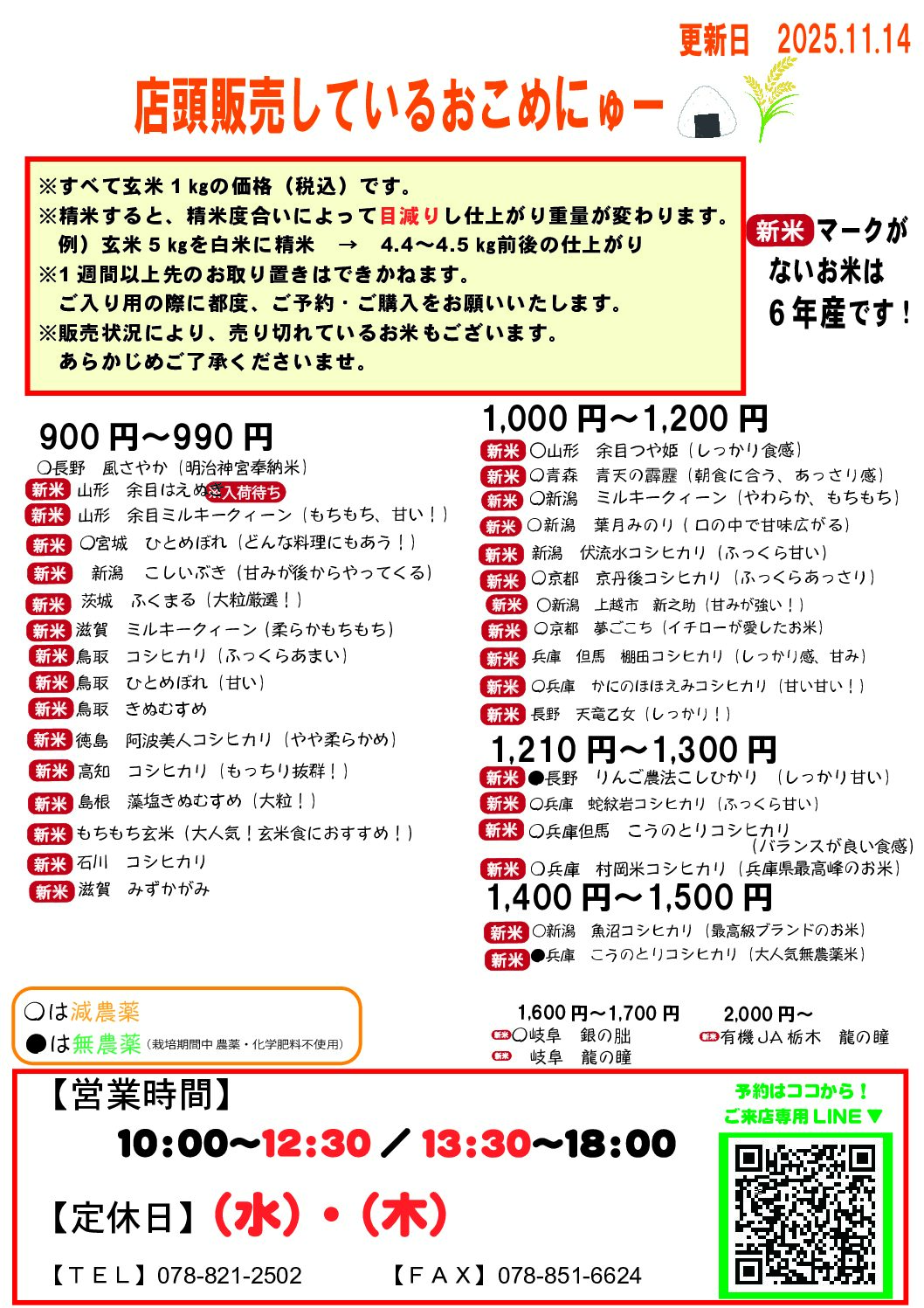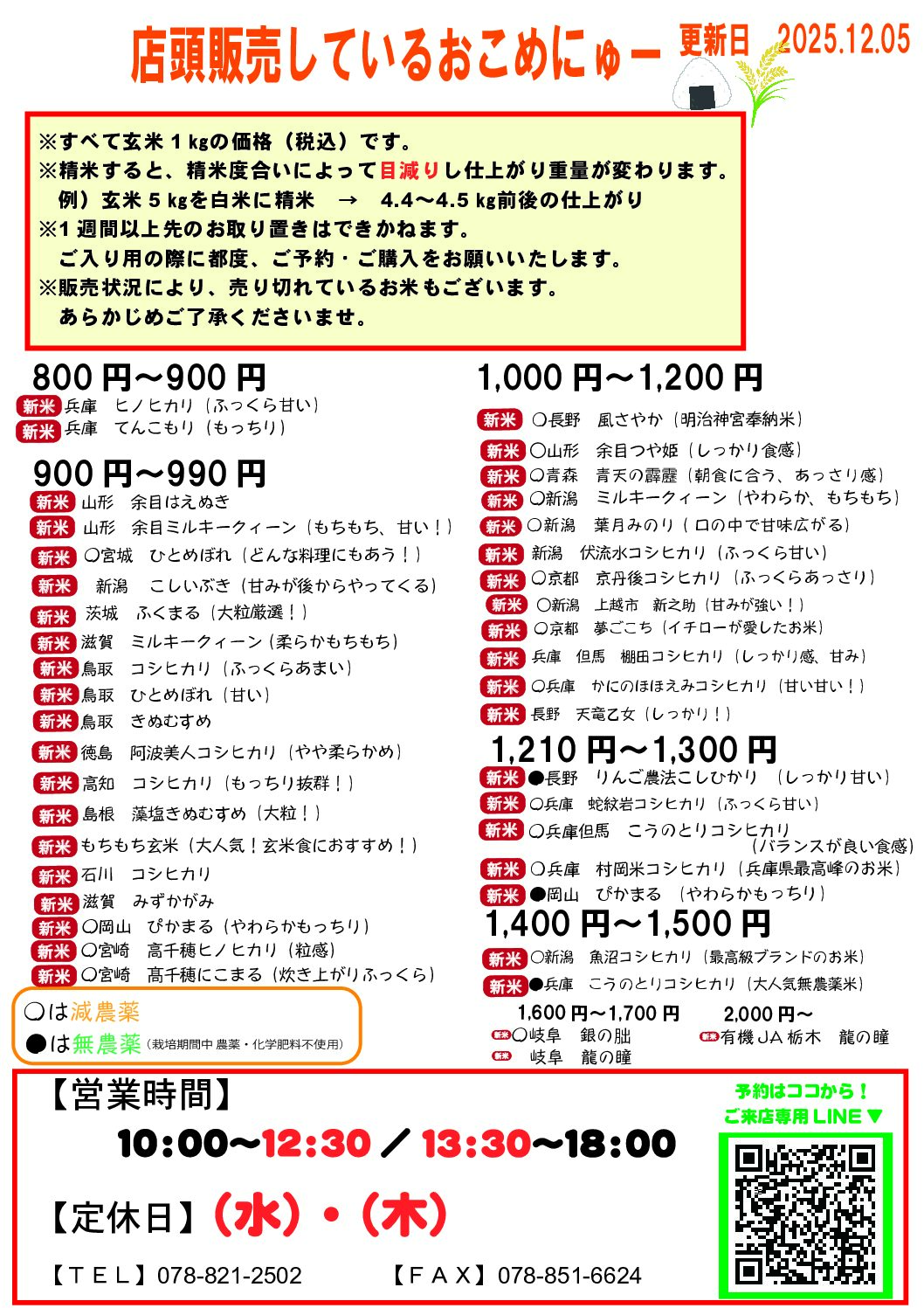 ⚠ご購入の前にご確認お願いします ※すべて玄米1㎏価格(税込)です※仕入れ状況により販売価格が変動する場合がございます※精米すると、精米度合いによって目減りし仕上がり重量が変わります例)玄米5㎏を白米に精米 → 4.4㎏ […]
