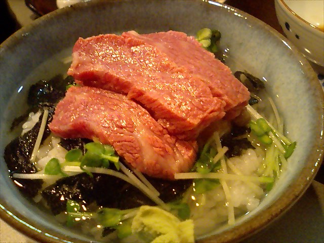 熊本でもめったに手に入らないとゆー極上の馬刺と、特製味噌タレのお茶漬け