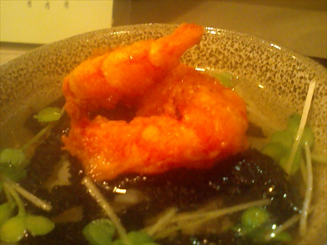 ぷりぷりアツアツのエビと、抜群の漬かり具合の茄子