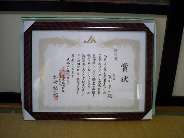 去年の米食味鑑定コンクールで特別優秀賞